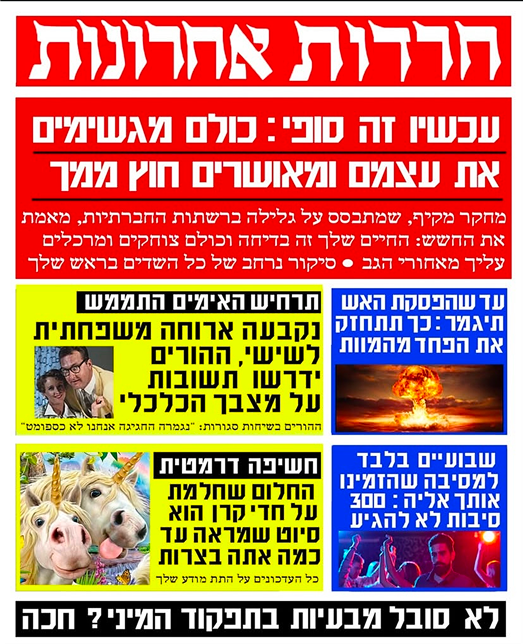 במקום לדבר באופן ישיר על הדברים שמטרידים אותנו כמו מלחמה, יוקר המחיה, או תחושת בדידות,אנחנו פשוט הופכים אותם למימז. דרך ההומור קל יותר לעקוף את הביקורת הפנימית ואת המעצורים שבתוכנו, שמונעים מאיתנו לדבר בכנות על מה שאנחנו מרגישים. מעבר להקלה האישית, ההומור מאפשר לנו גם להעביר ביקורת שקטה כלפי ההורים שלנו, הדורות הקודמים והמדינה, כלפי מי שהבטיח לנו עתיד ברור ובטוח שלא באמת קיים. אנחנו עוטפים את האכזבה והכעס באירוניה וציניות, אולי כי ככה קל יותר להתמודד איתם, אבל גם כי זו הדרך שלנו לומר את האמת, גם אם זה יוצא קצת עקום.